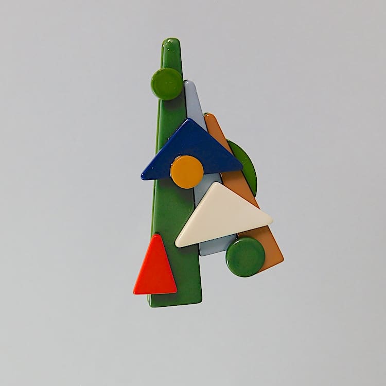 French phenolic abstract tree brooch. Fitted with a roll safety clasp.