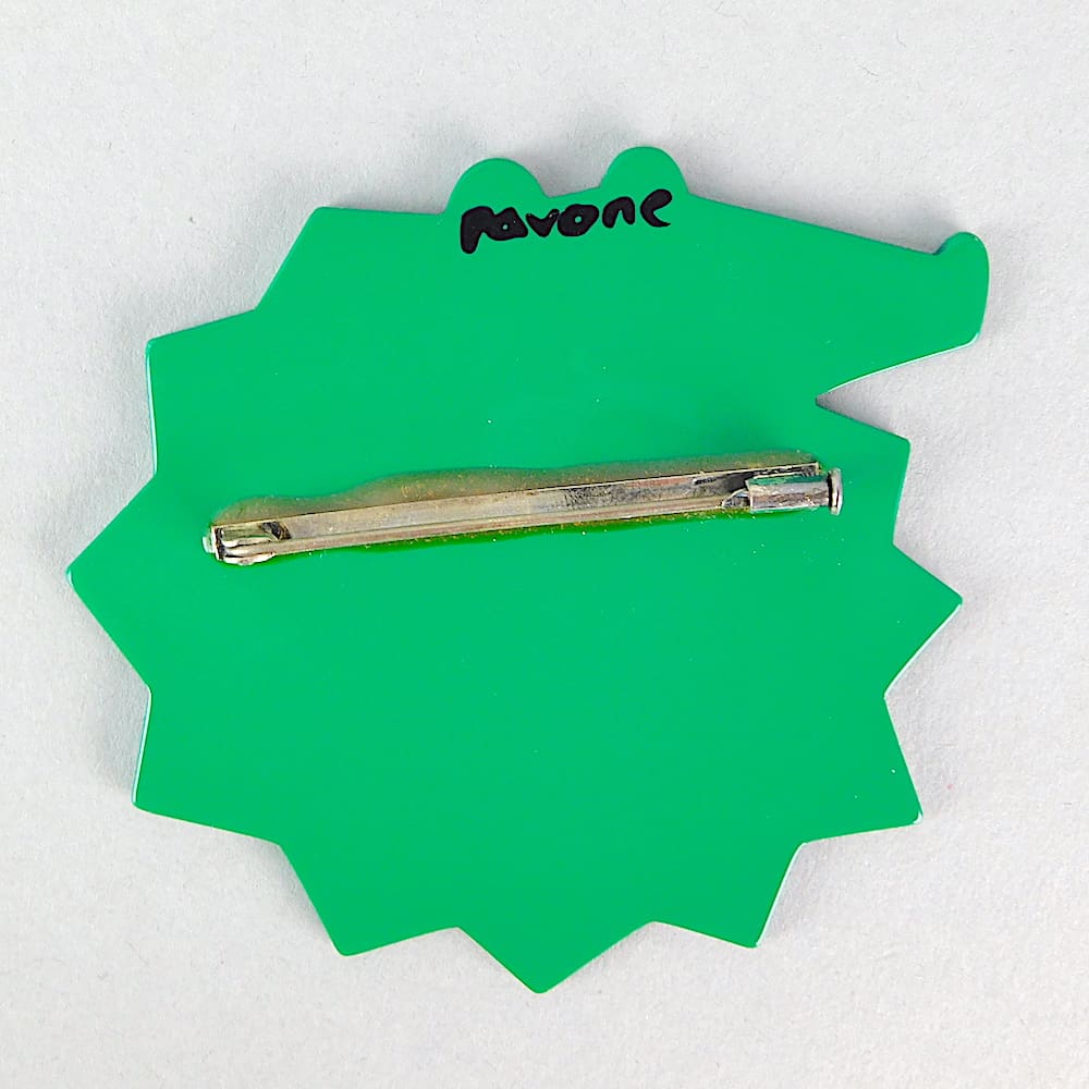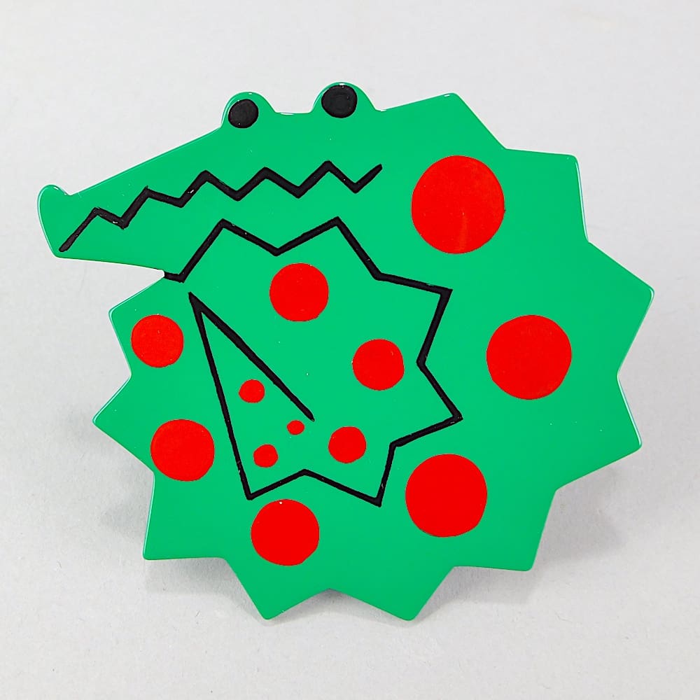 Large French vintage galalith hand painted art deco crocodile brooch.