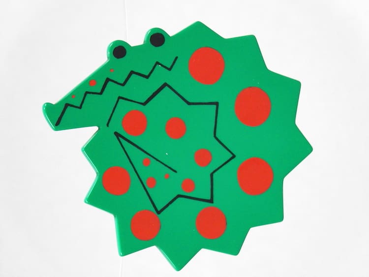 Large French vintage galalith hand painted art deco crocodile brooch.