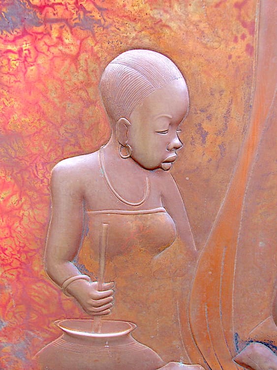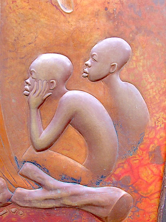 This macassar ebony framed, press moulded and tapped panel was made in France and is signed by the artist, Henge. A truly stunning plaque made in the late 1930s.