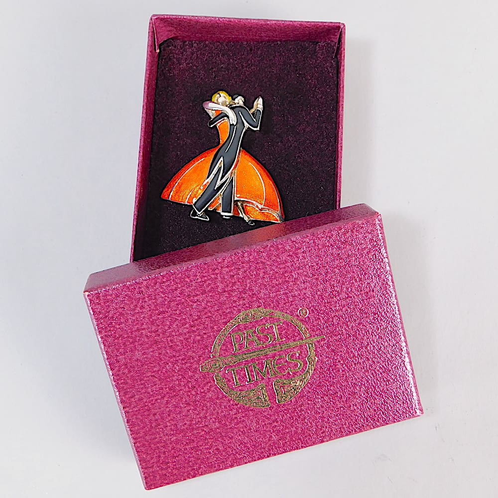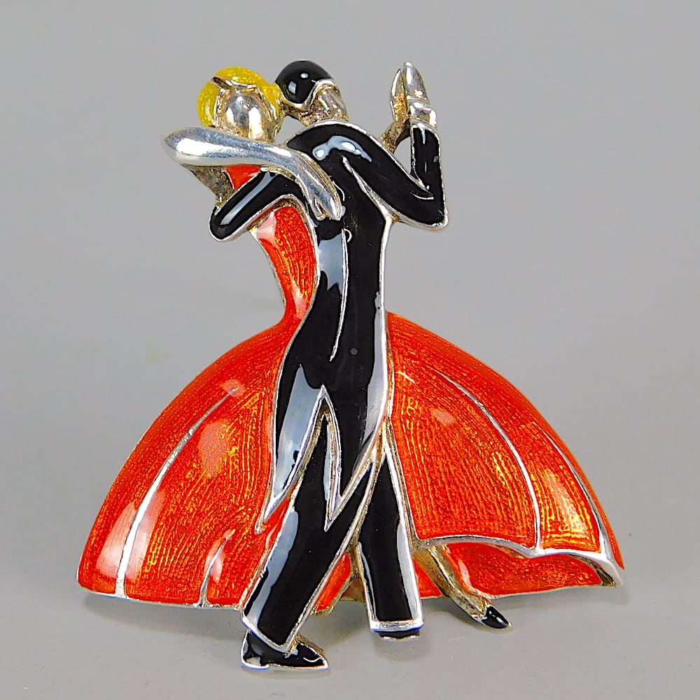 A Past Times Black and Orange enamel Clarice Cliff dancers brooch.