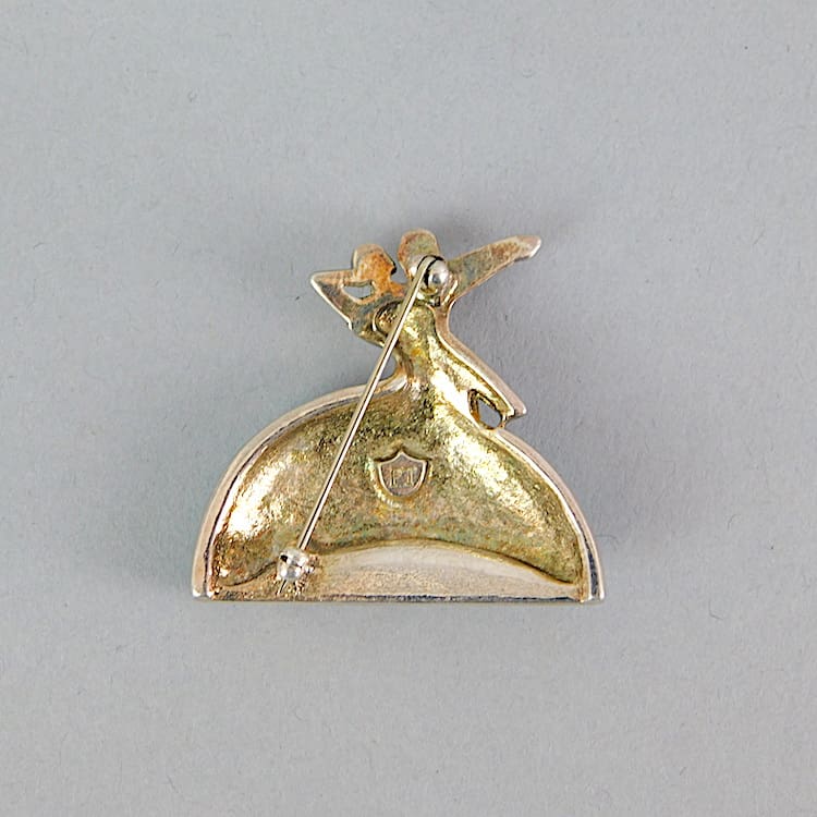 A Past Times silver and blue enamel Clarice Cliff dancers brooch.