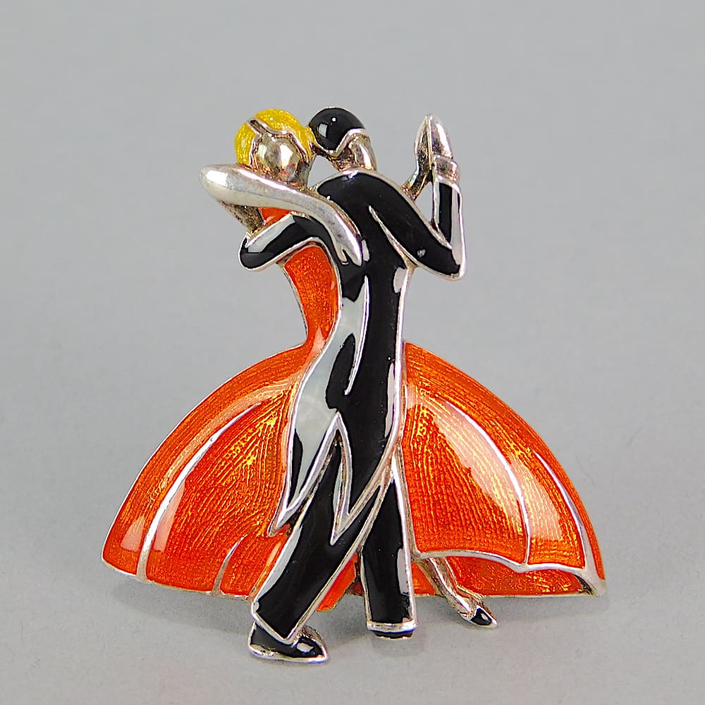 A Past Times Black and Orange enamel Clarice Cliff dancers brooch.
