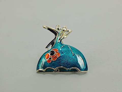 A Past Times silver and blue enamel Clarice Cliff dancers brooch.