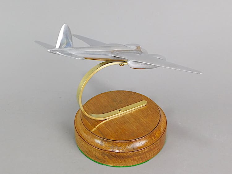 Chrome plane mounted on a wooden base.