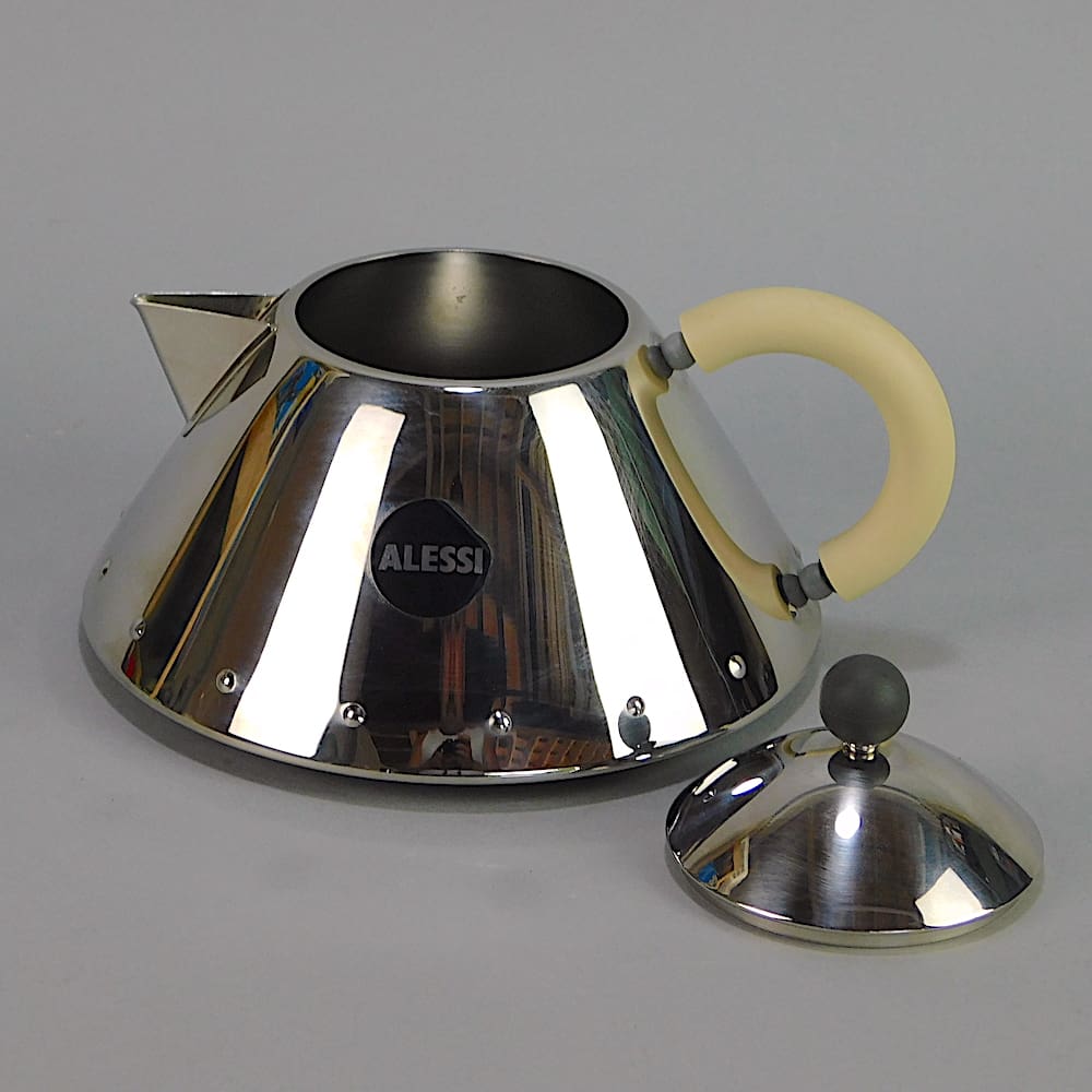 A three piece art deco Alessi tea set, designed by Michael Graves (1934 – 2015).