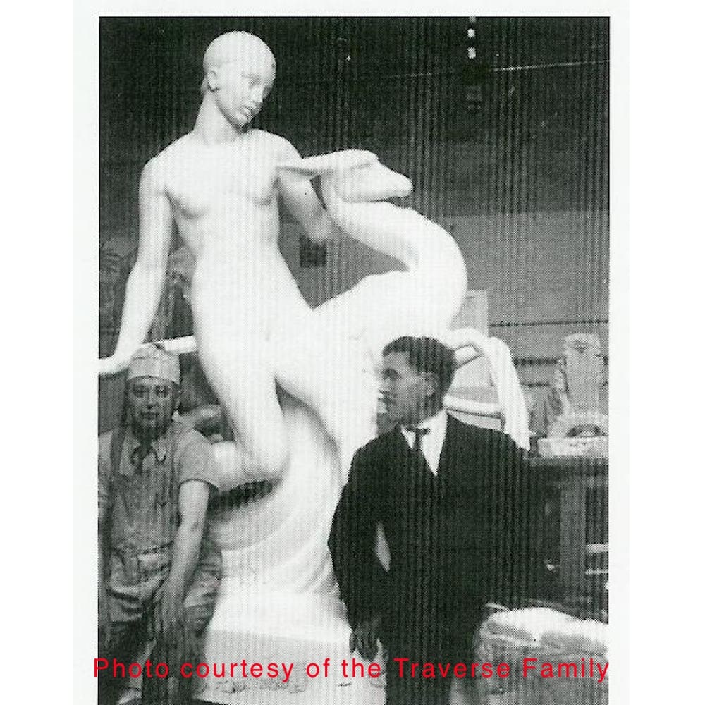 Pierre Traverse – born April 1, 1892 in St. Andre de Cubzac (Dordogne) France. He studied under Injalbert and exhibited at the Salon des Artistes Francais, of which he was an hors-concours member, the Salon d’Automne and the Salon des Artistes Decorateurs. He was a sculptor who worked primarily in bronze, stone, and white marble. He received a silver medal in 1921, a gold medal in 1926 and a diploma of honour in 1937 at the Exposition Internationale in Paris. He was also awarded a medal of honour in 1942 and was decorated with the Legion d’Honneur in 1938. His works can be found in the Musee du Petit Palais in Paris and other fine collections held internationally today. Pierre Traverse died in 1979.