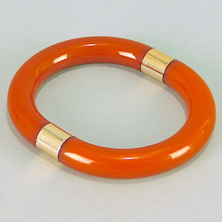 Measures almost .5 inches (2cm) wide and inner measurements are approx. 2 inches (5cm) wide and 2.75 inches long (7cm), so will fit a small to medium sized wrist.
