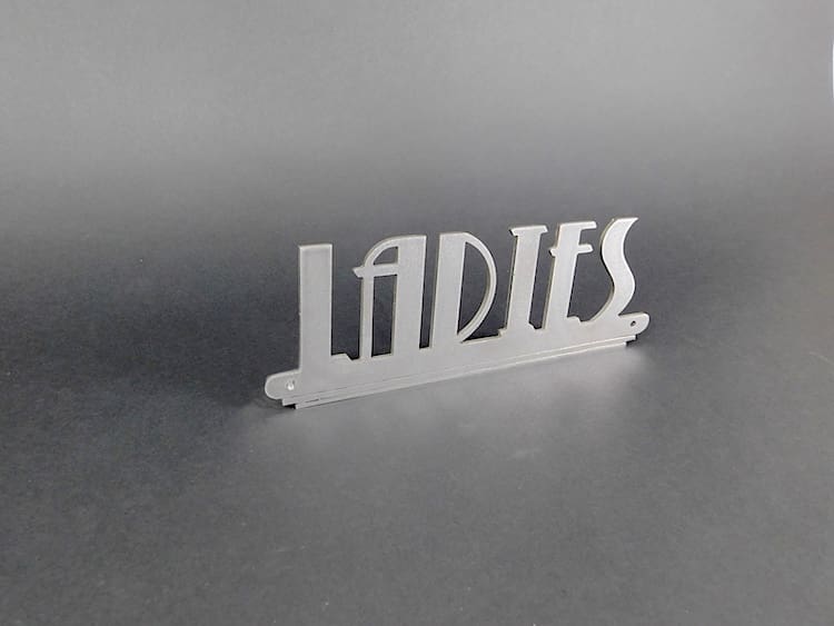 A reproduction Ladies sign in 3mm stainless steel, a copy of an original set of American restroom signs that I own.