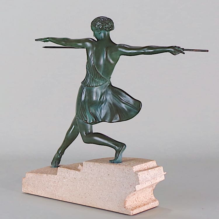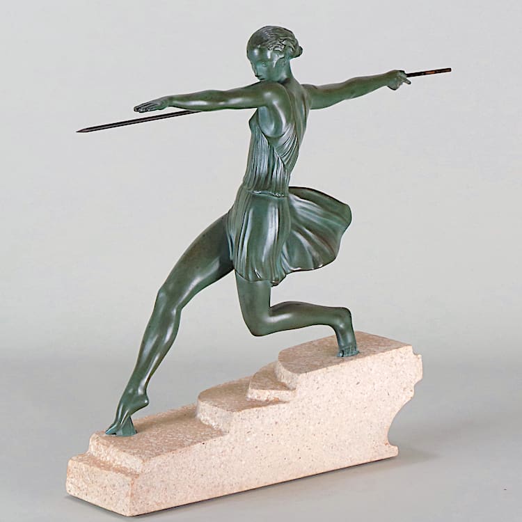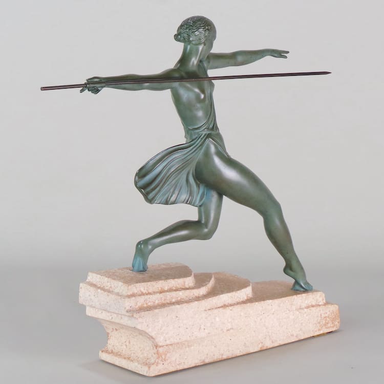 She has a brass spear and this one is signed to the base Fayral – a pseudonym used by Le Faguays.