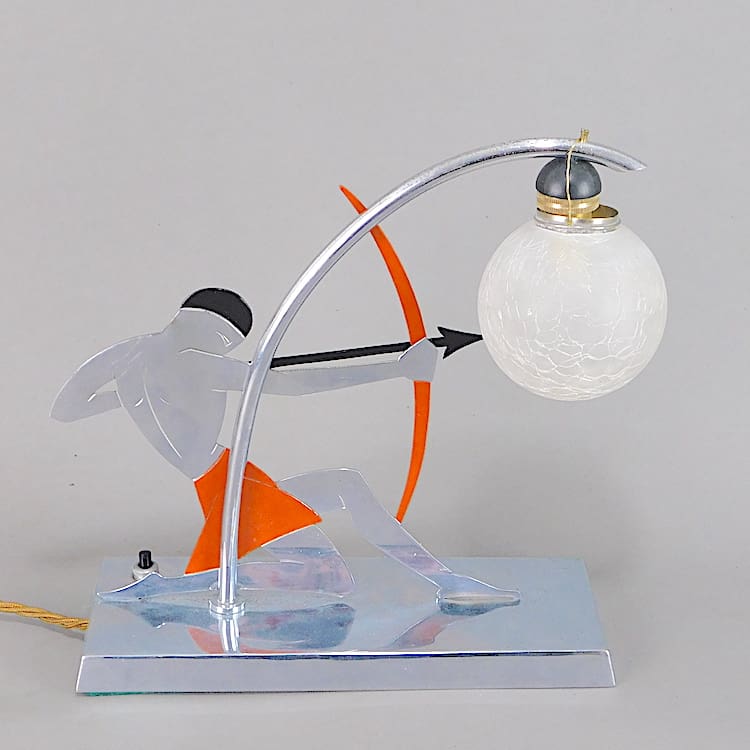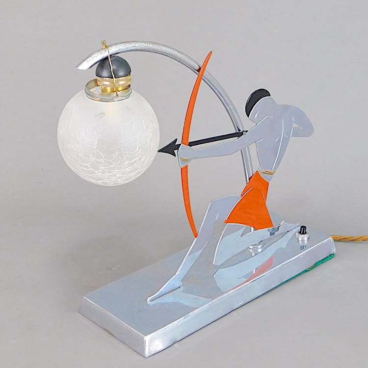 French chromed metal archer lamp, as seen in many books on art deco and Millers guide.