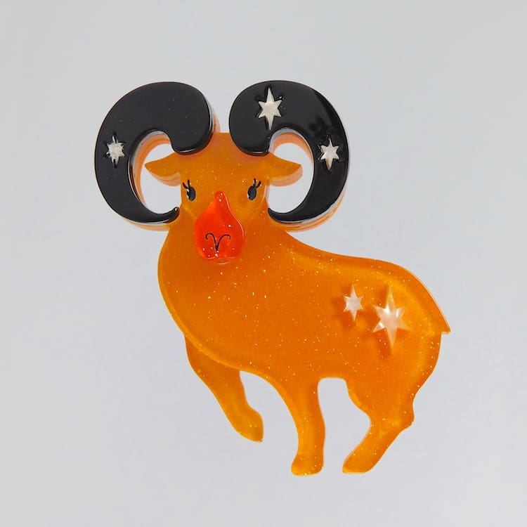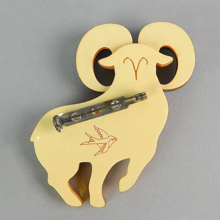 Aries the Ram brooch by Erstwilder. Stamped with the Erstwilder bird mark, comes in its original box with tag in and fitted with a safety clasp.