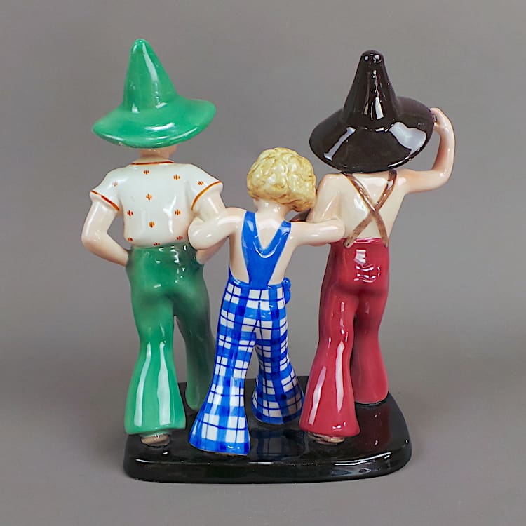 Hand painted art deco ceramic 3 children group designed by Germain Bouret for the Goldscheider company in 1934.