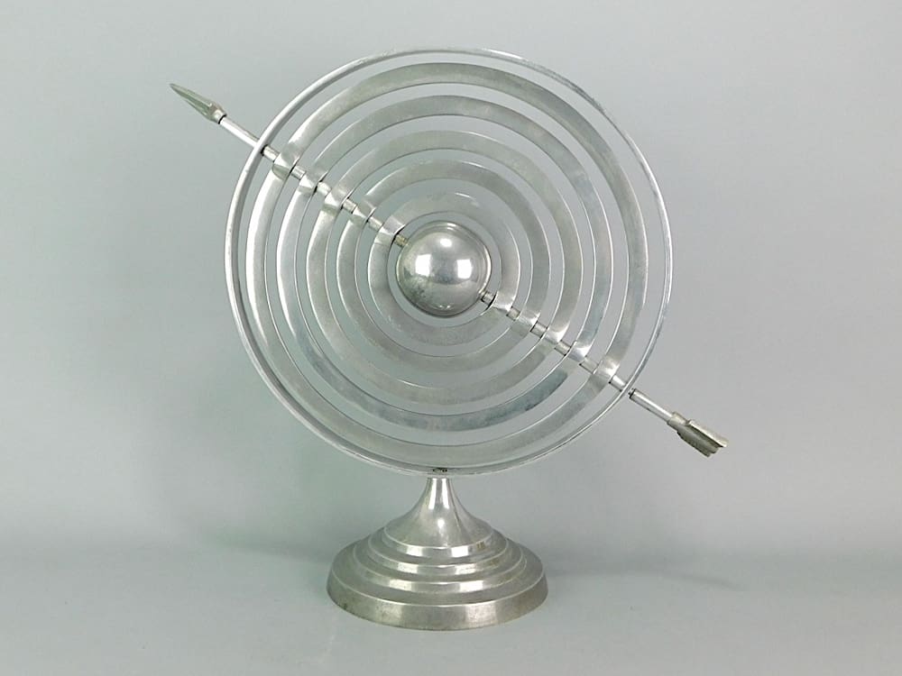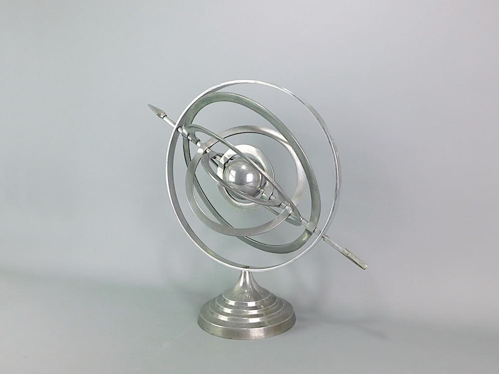 These were originally used as an astronomical instrument representing the movement of the celestial bodies. I believe they later morphed into sundials. Wether this item is capable of being a sundial I don’t know. Perhaps it was made as a piece of articulated sculpture.
