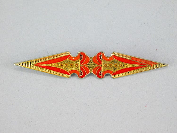 Gilt and red enamel bar brooch.