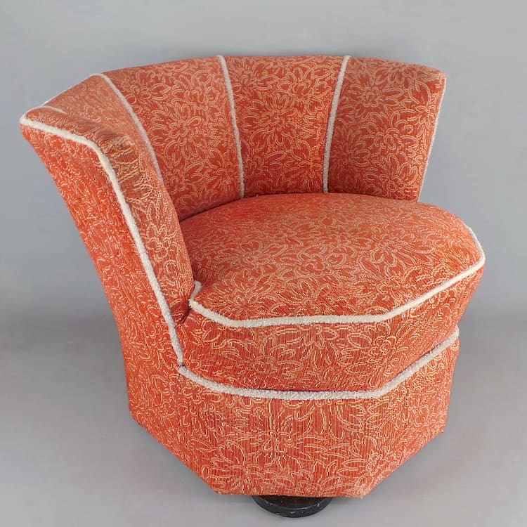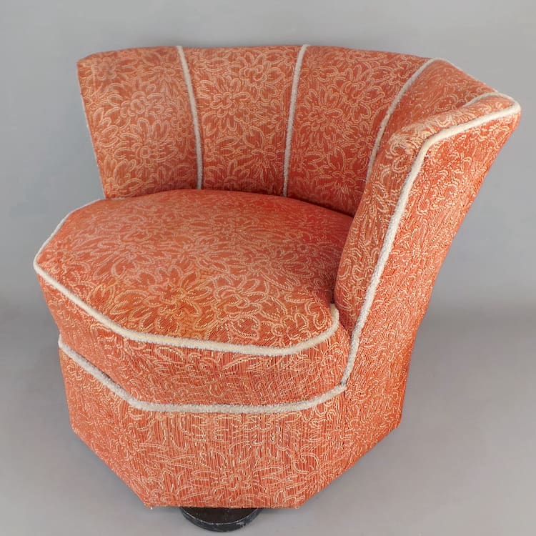 Low French Art Deco moquette fan back bedroom chair.