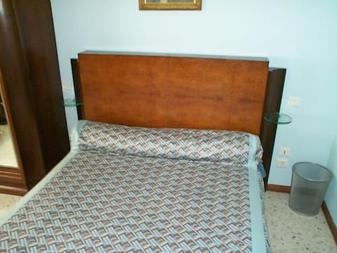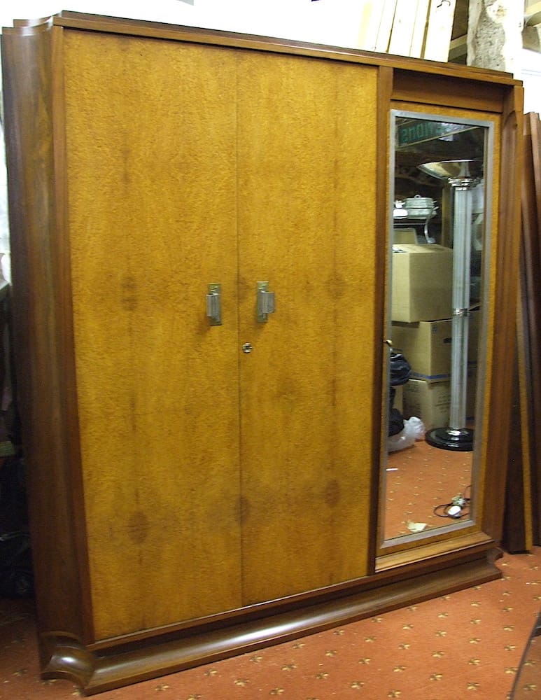 The triple wardrobe with mirrored door. Consists of a pair of flanking shelf units each with 5 shelfs and a central hanging rail under a high shelf, although there is provision to turn this into a shelf area as well if required.