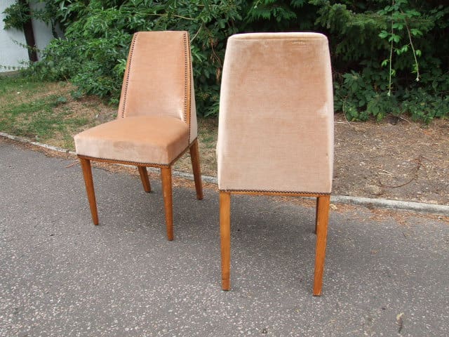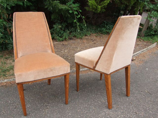 A pair of very stylish French velour covered bedroom/salon chairs with splayed back legs.