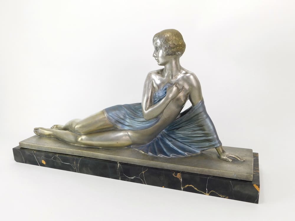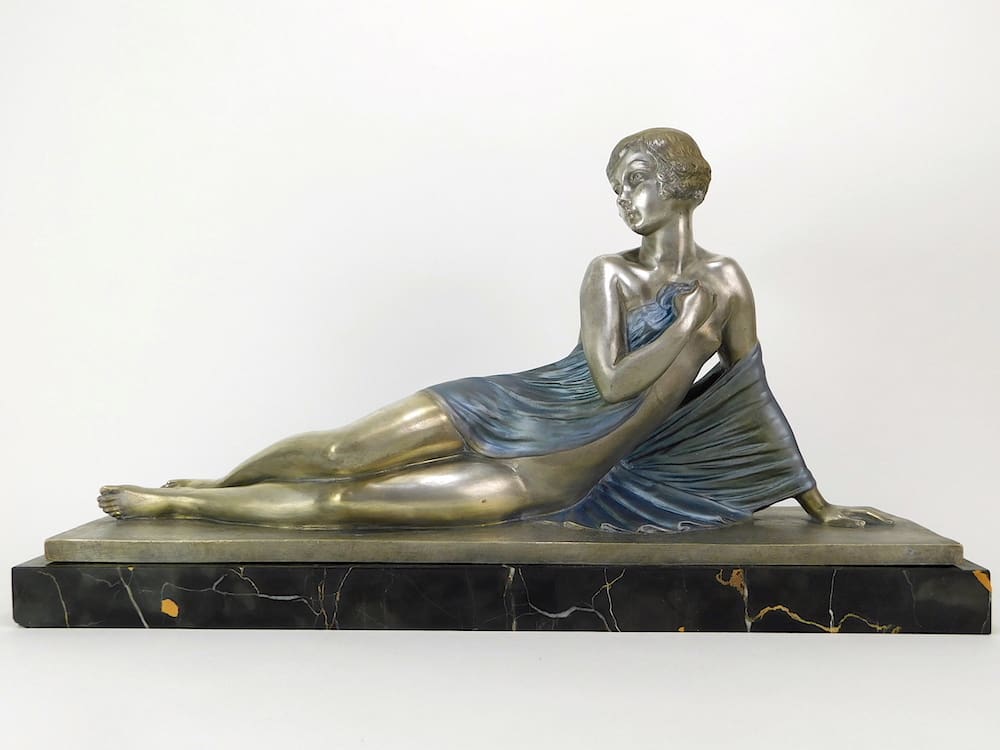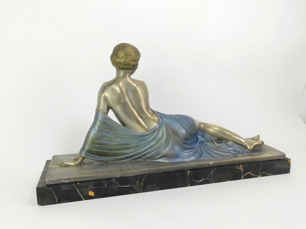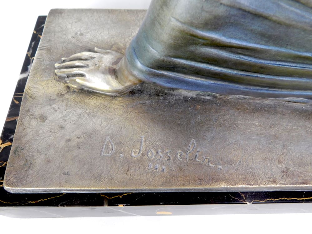 Large French bronze art deco lady signed D. Josselin in the bronze.