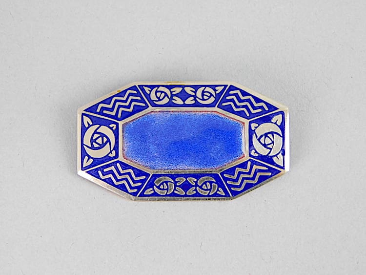 Blue enamel french art deco brooch fitted with a push safety clasp. Made in the 1920’s.