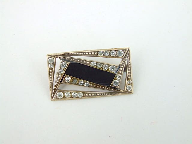 French art deco brooch with rhinestone detail.