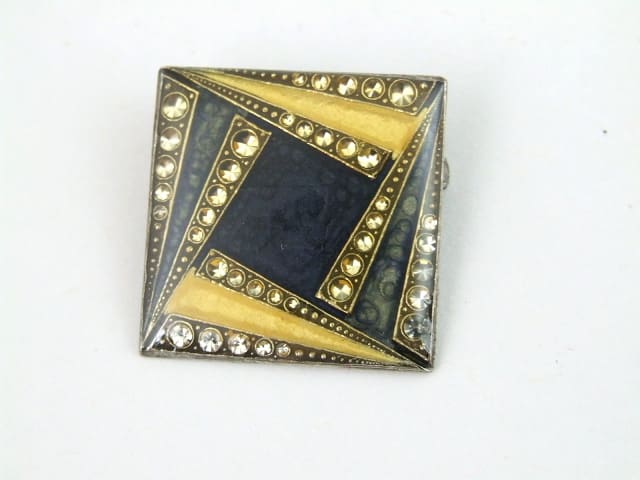 French art deco square enamel and diamonte brooch by Pierre Bex.