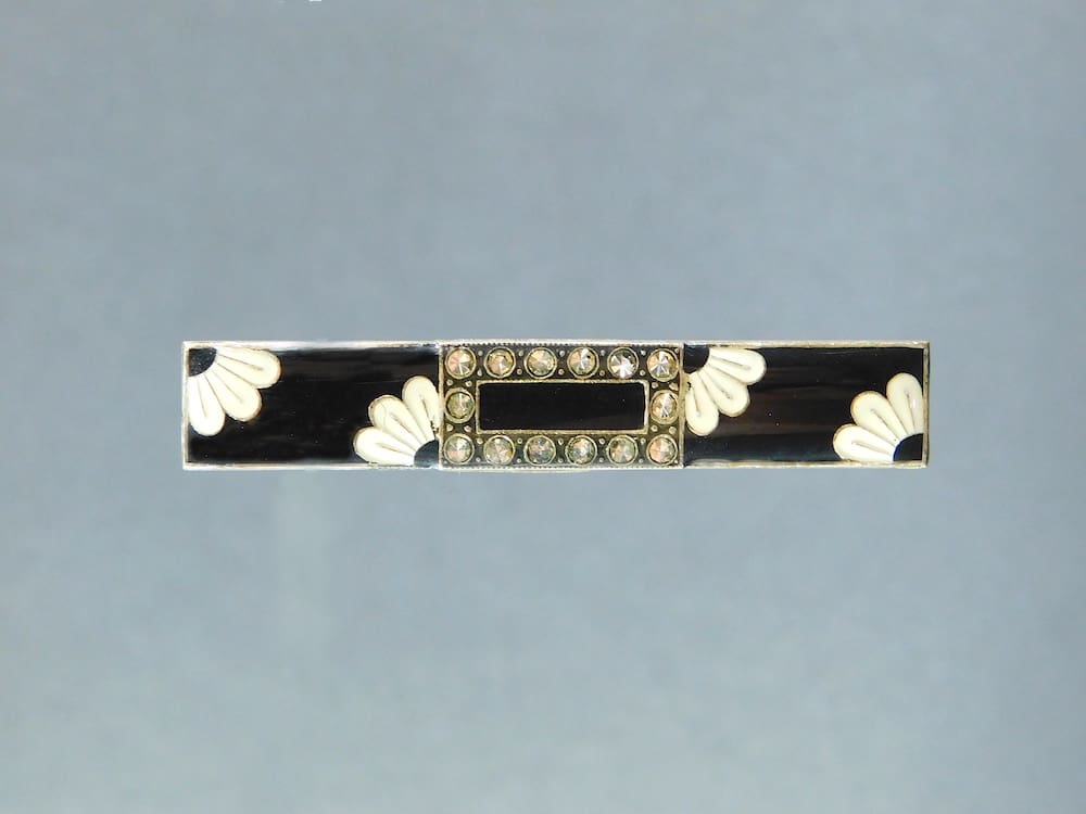 French black and pale pink enamel bar brooch by Pierre Bex.