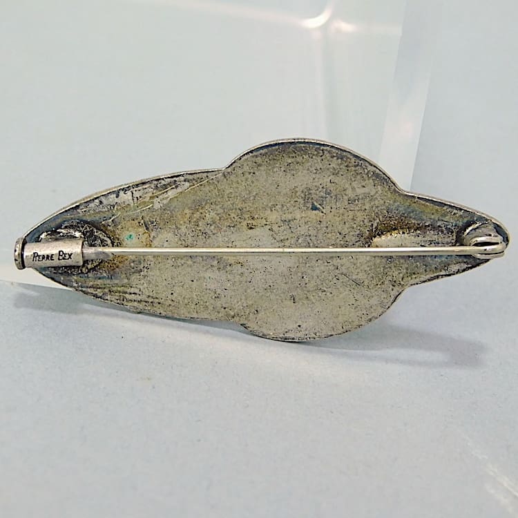 Navy and pale blue enamel ovular brooch by Pierre Bex of Paris.