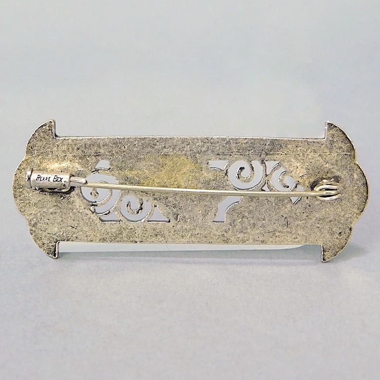 Large blue and cream floral art deco enamel brooch by Pierre Bex of Paris.