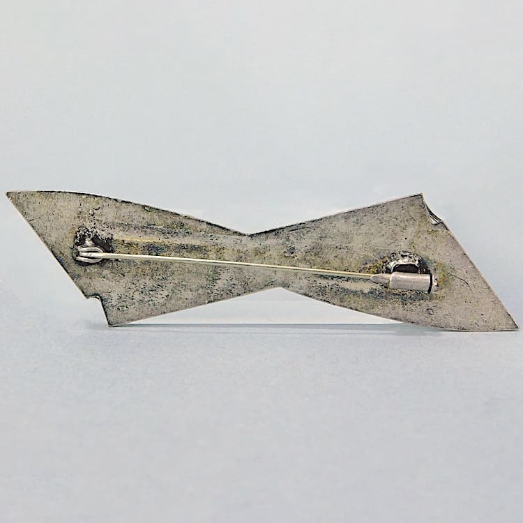 Large blue and black enamel bow brooch. It is fitted with a safety clasp.