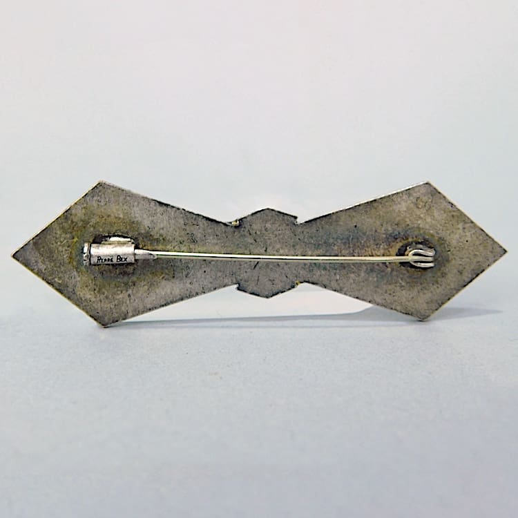 Large blue and yellow enamel bow brooch. It is fitted with a safety clasp.