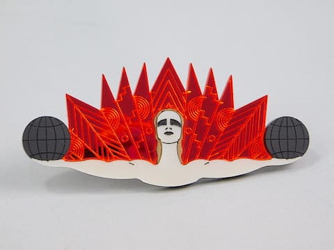 A limited edition acrylic metallic red cabaret brooch. Fitted with a roll safety clasp.