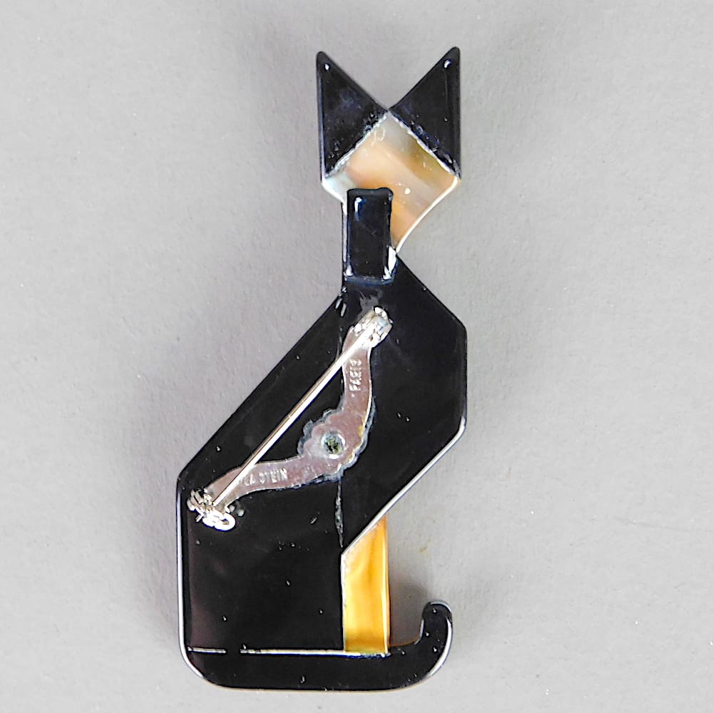 Vintage black and gold art deco cat brooch.