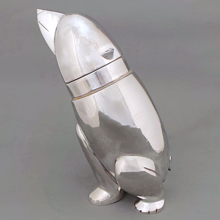 Large chromed metal polar bear cocktail shaker.