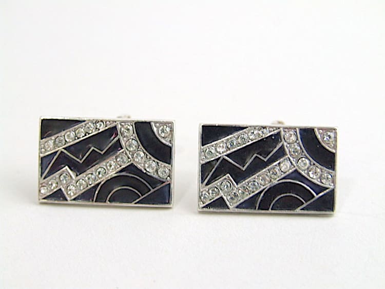 French art deco enamel and silver plated geometric cufflinks with twist fitting.