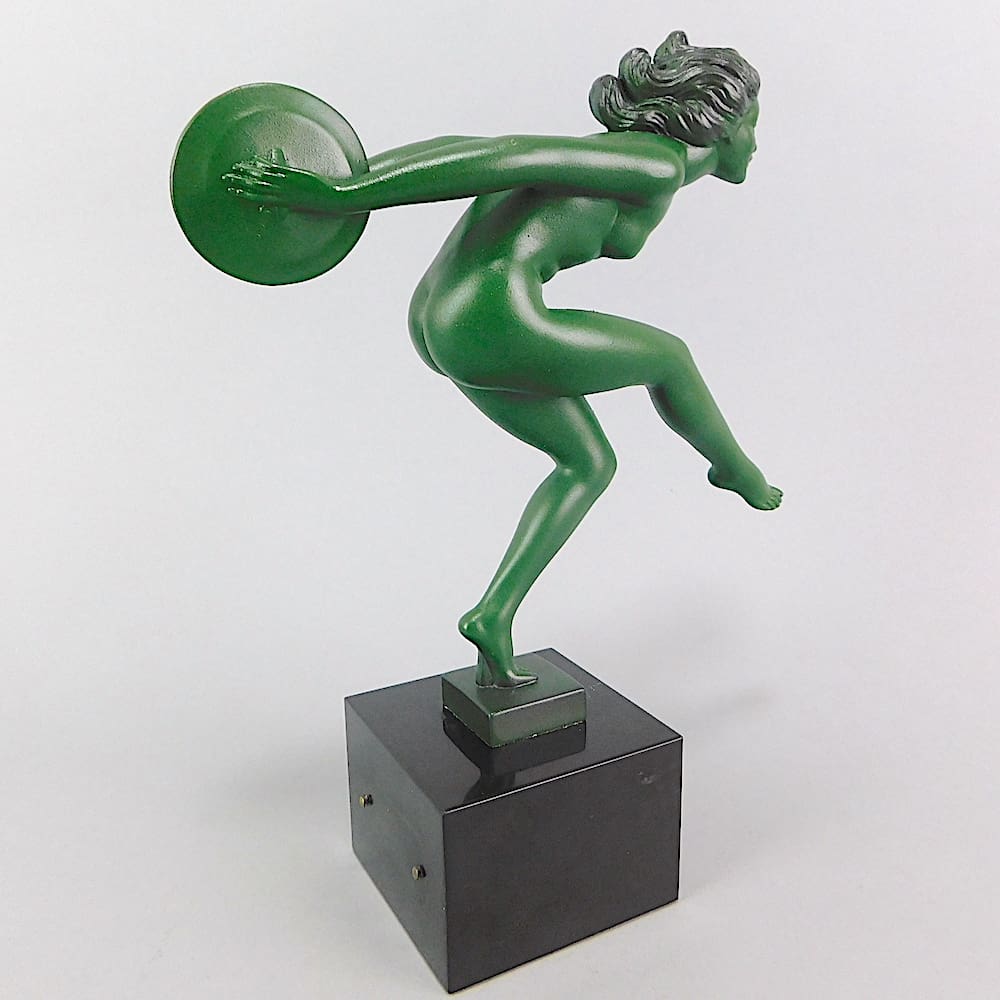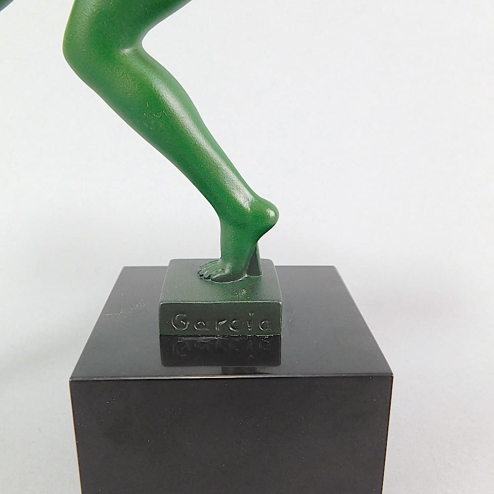 1930’s figure of a nude cymbal dancer by Garcia and signed to the metal socle.