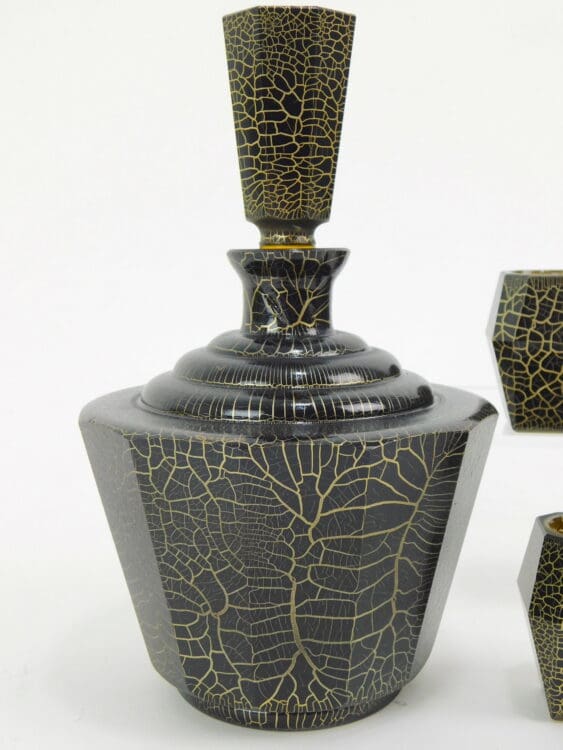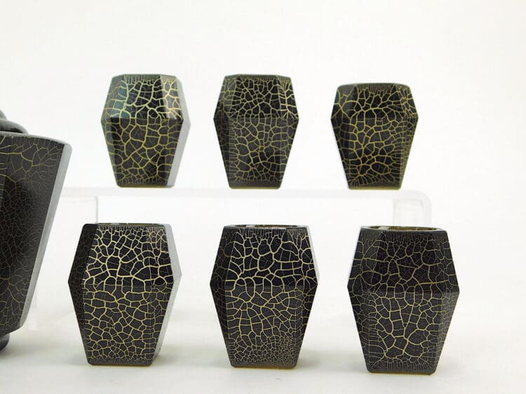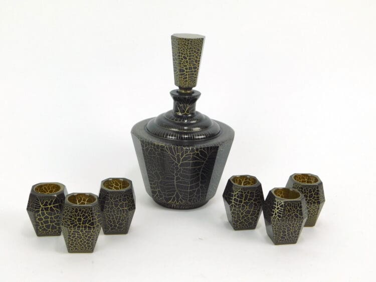 A very unusual modernist Czechoslovakian crackle pattern decanter set.