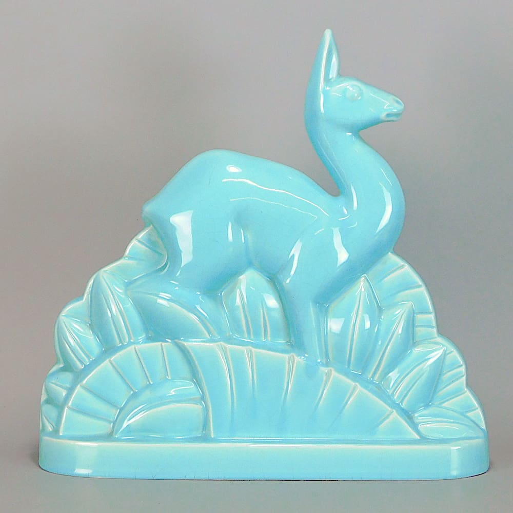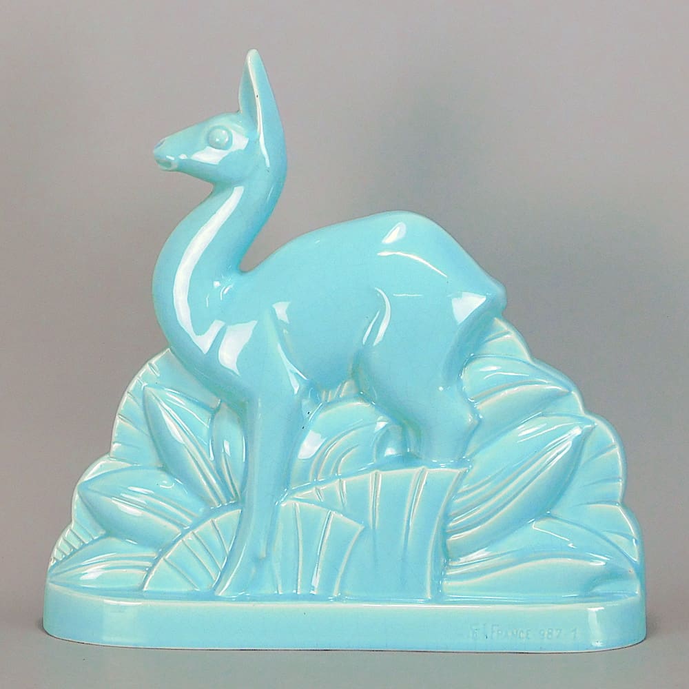 French faience blue crackle glazed deer.