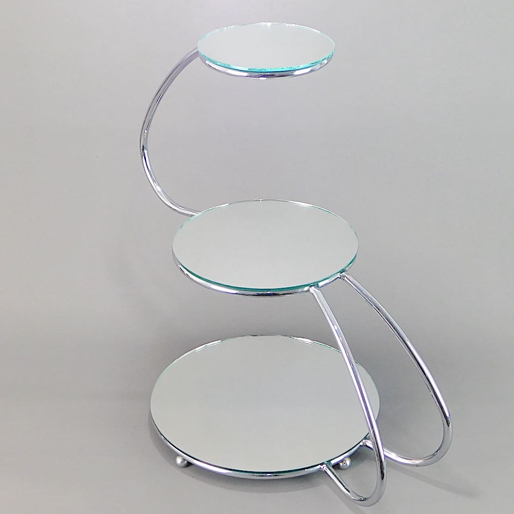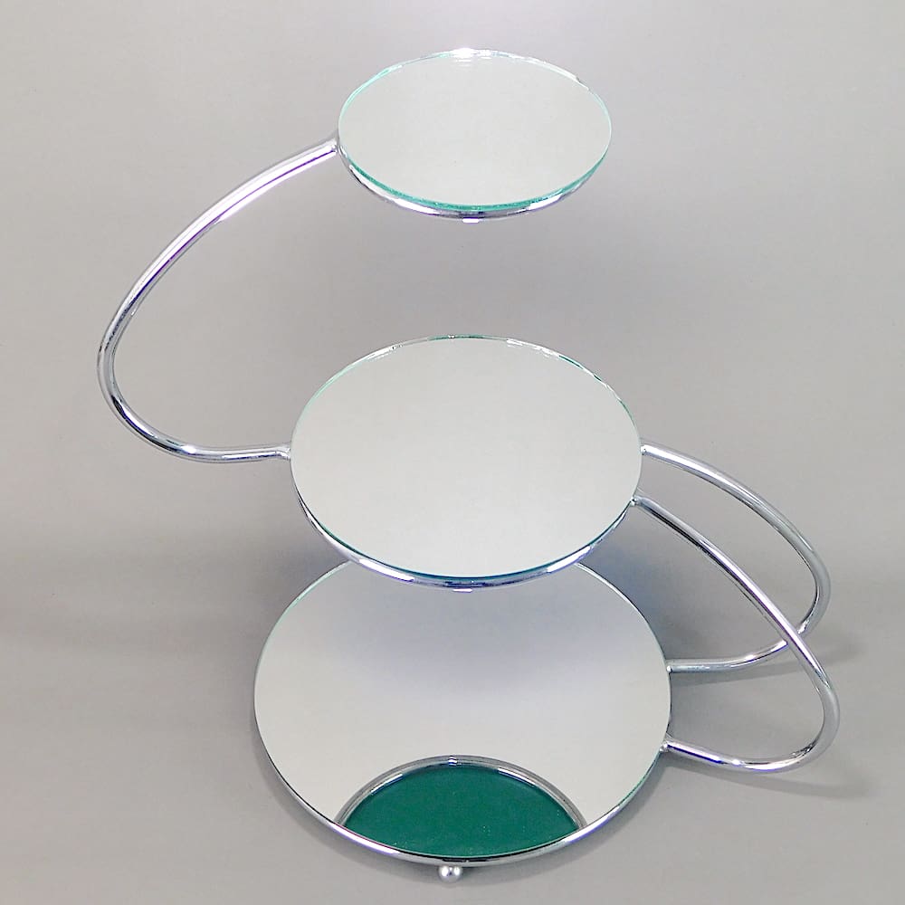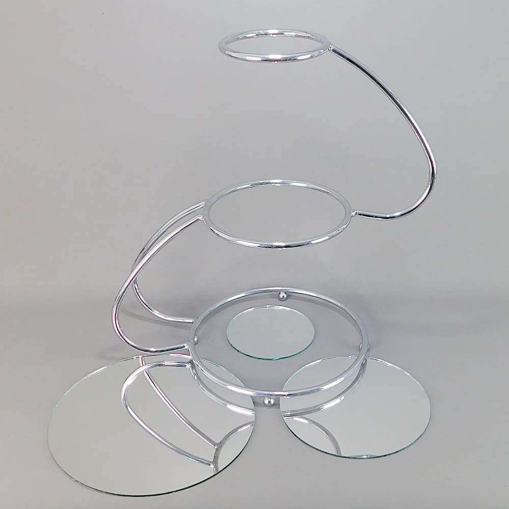 Chrome metal tubes and mirror glass shelves stand.