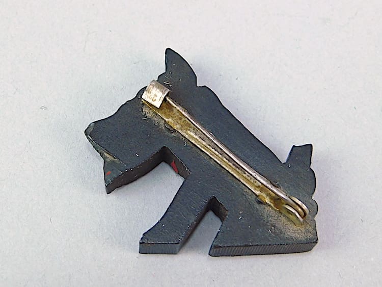 Phenolic french hand painted Ric the terrier dog brooch. Ric was a cartoon dog designed by Pol Rab.