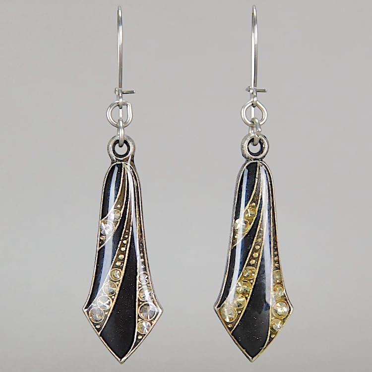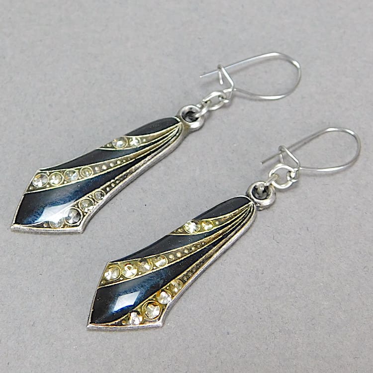 French art deco black enamel and diamonte earrings by Pierre Bex.