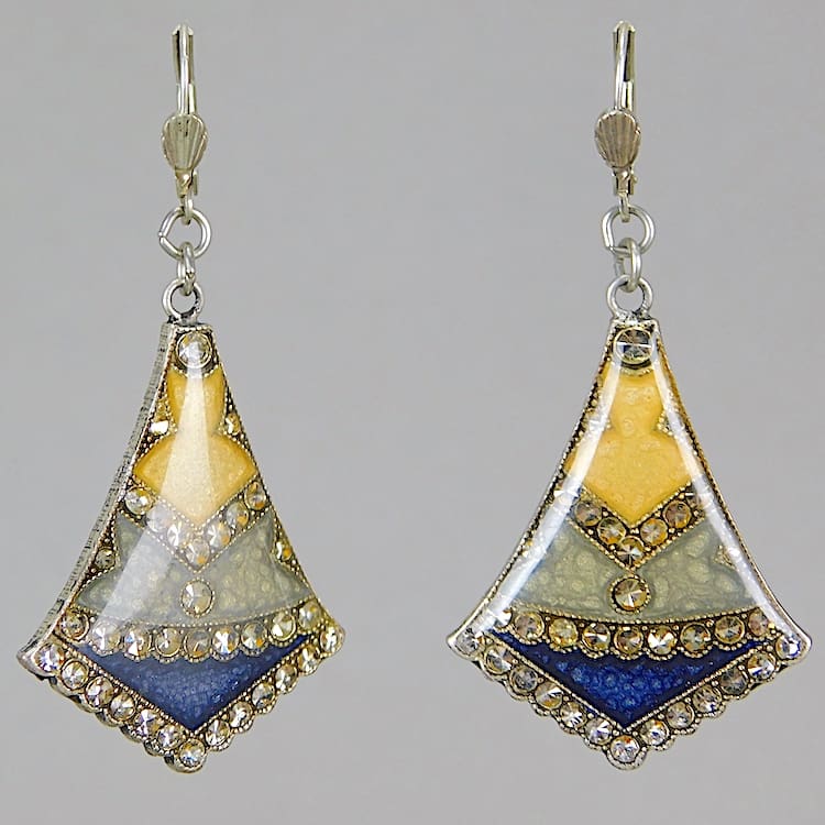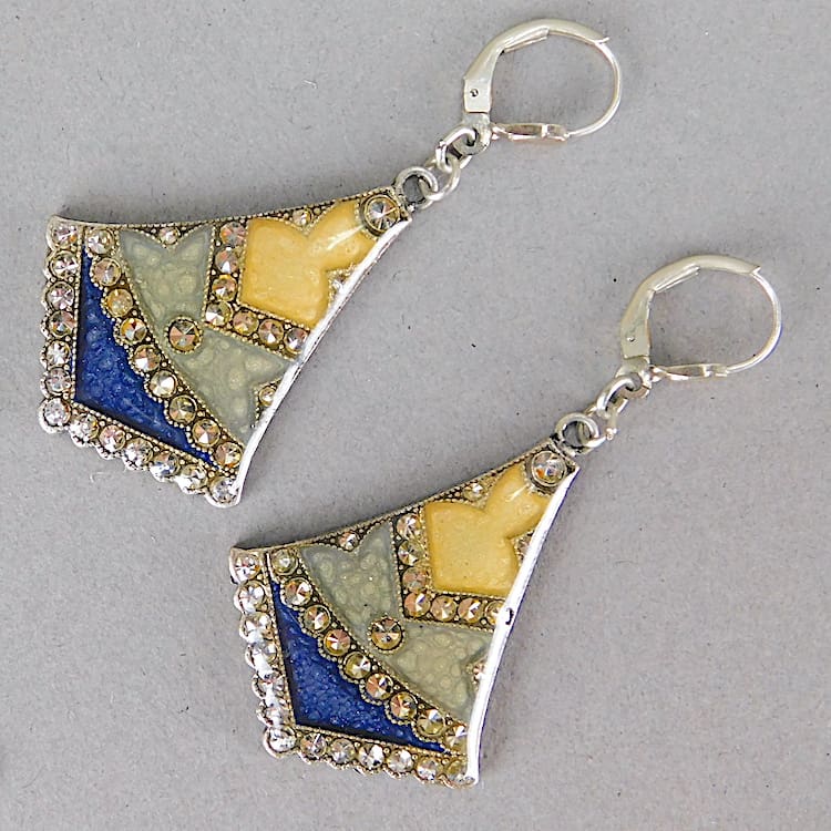 French enamel and diamonte fan earrings for pierced ears.