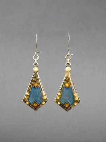 French blue enamel and diamonte art deco fan earrings for pierced ears, fitted with silver safety clasp.