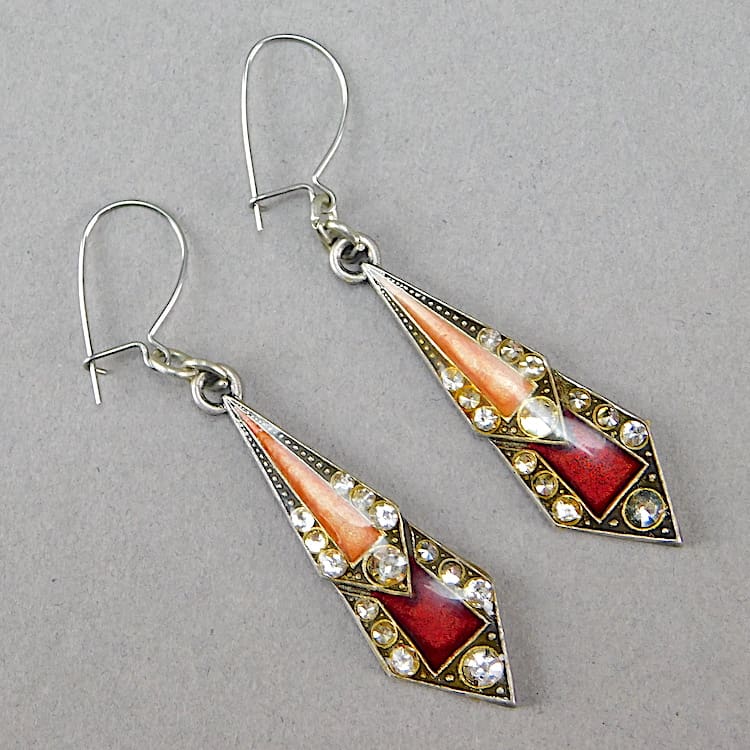 Pierre Bex Earrings. French enamel and diamonte earrings for pierced ears and fitted with silver safety clasp.