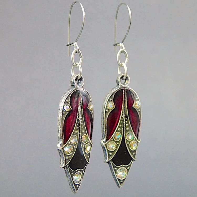French enamel and diamonte earrings for pierced ears.