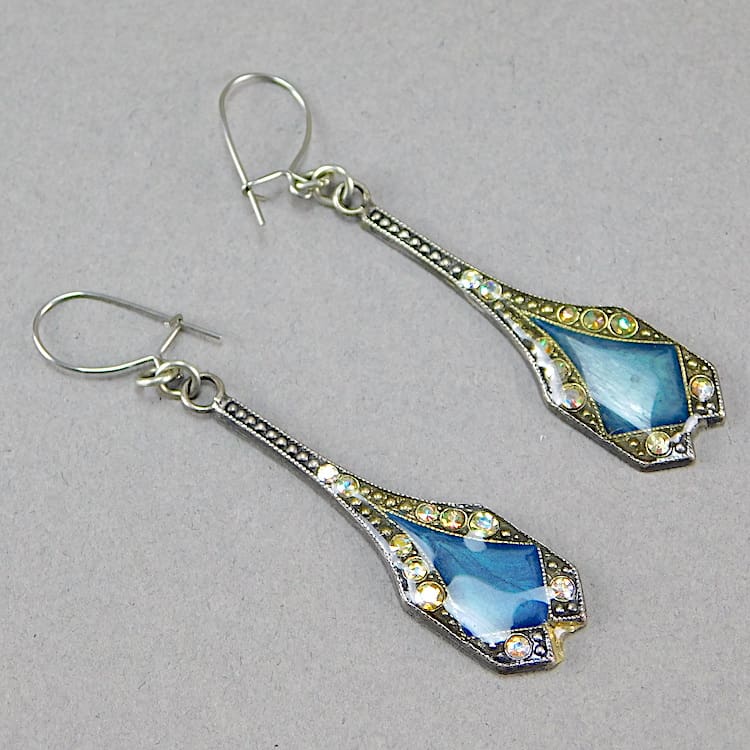 French enamel and diamonte earrings by Pierre Bex.