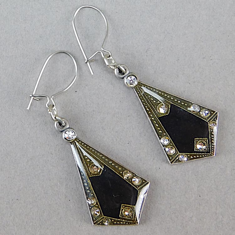 French enamel and diamonte earrings for pierced ears.