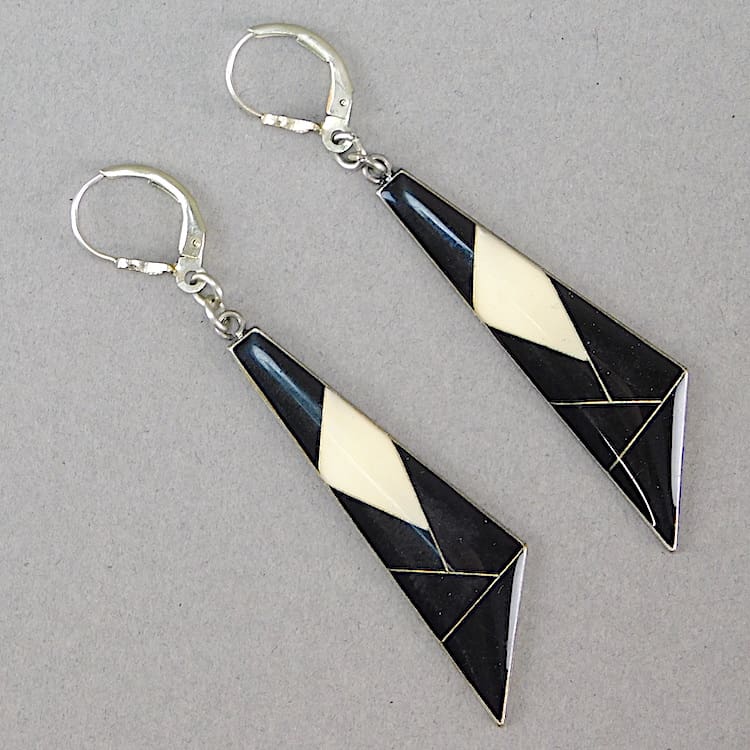 French enamel earrings for pierced ears, fitted with silver safety clasp.