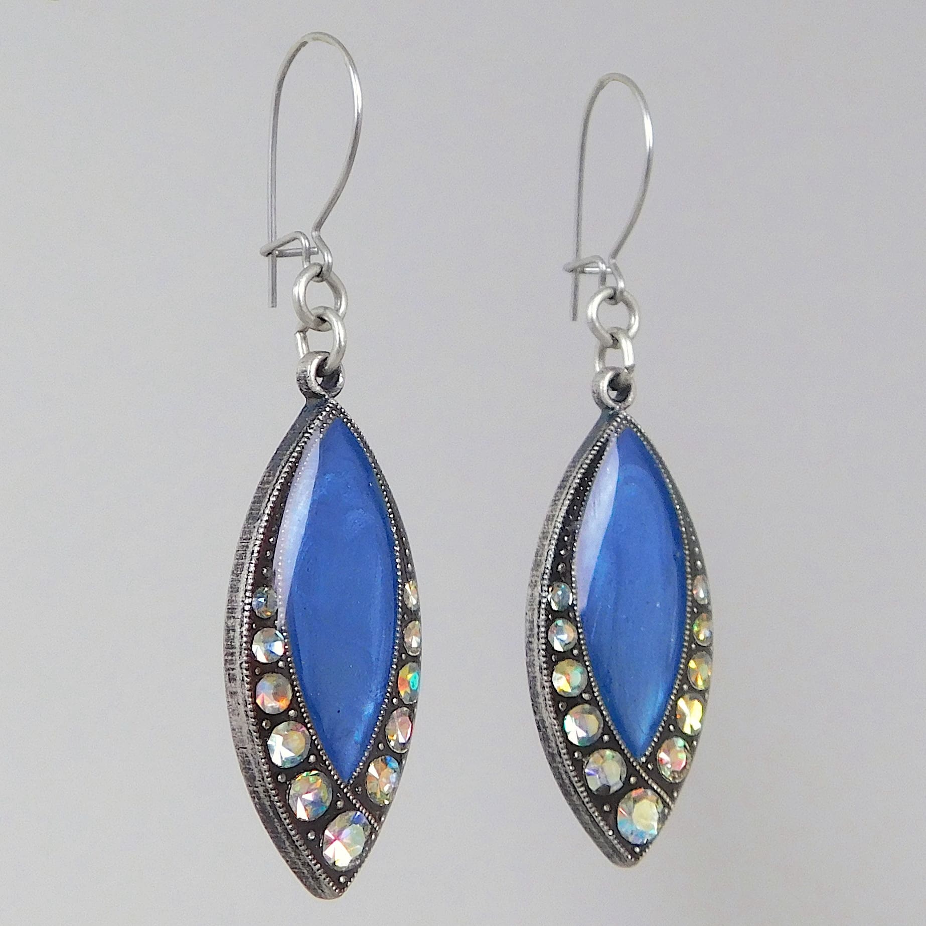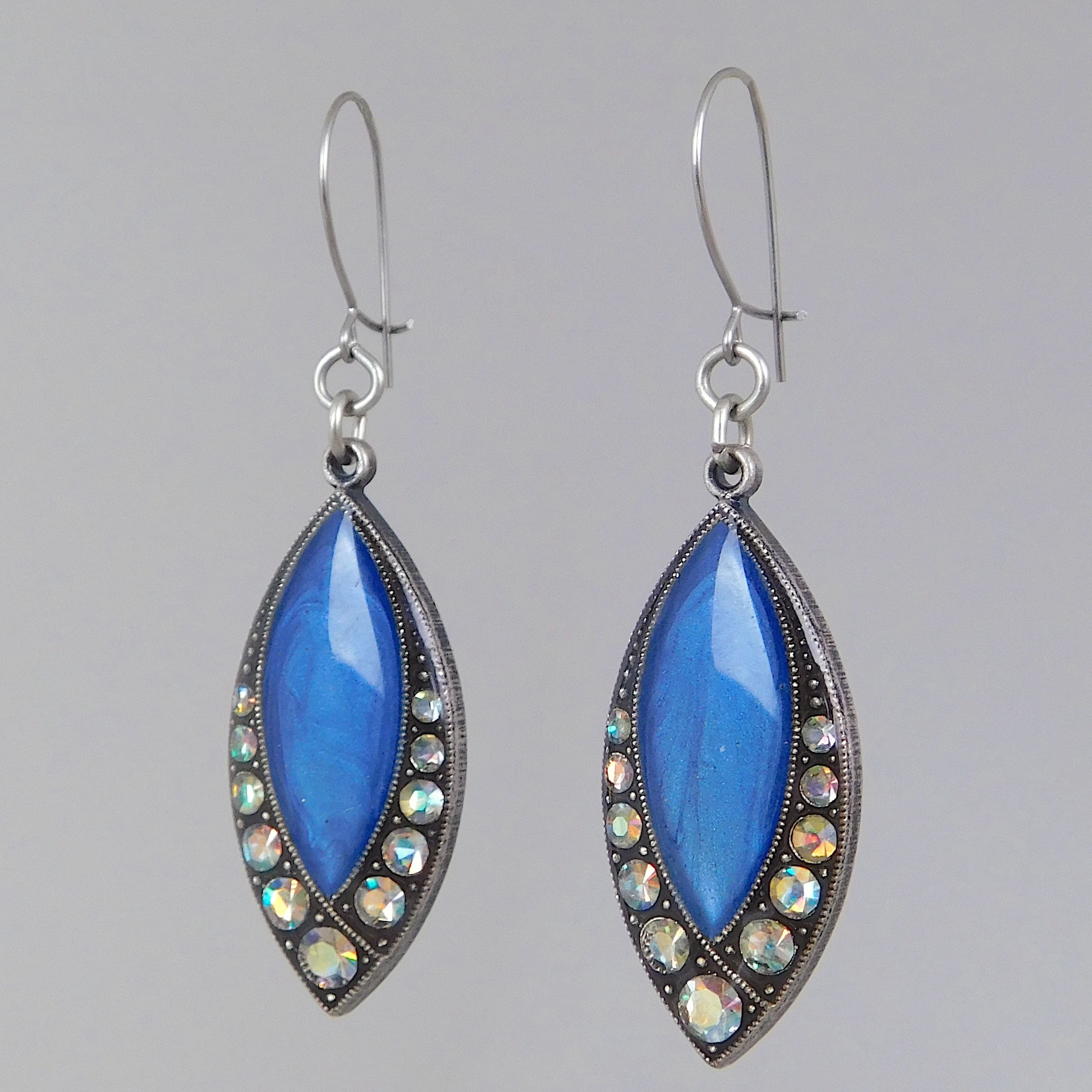 French enamel earrings in teardrop shape.
