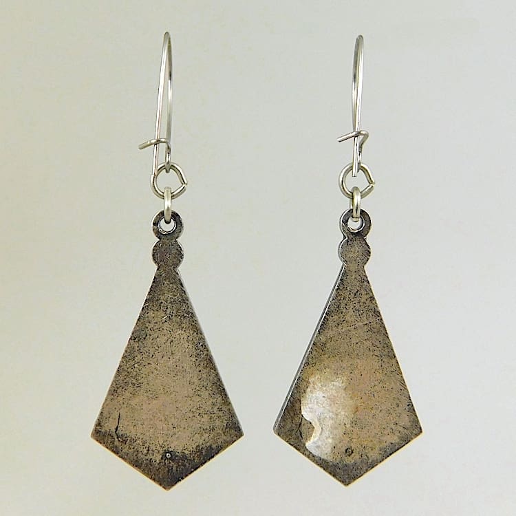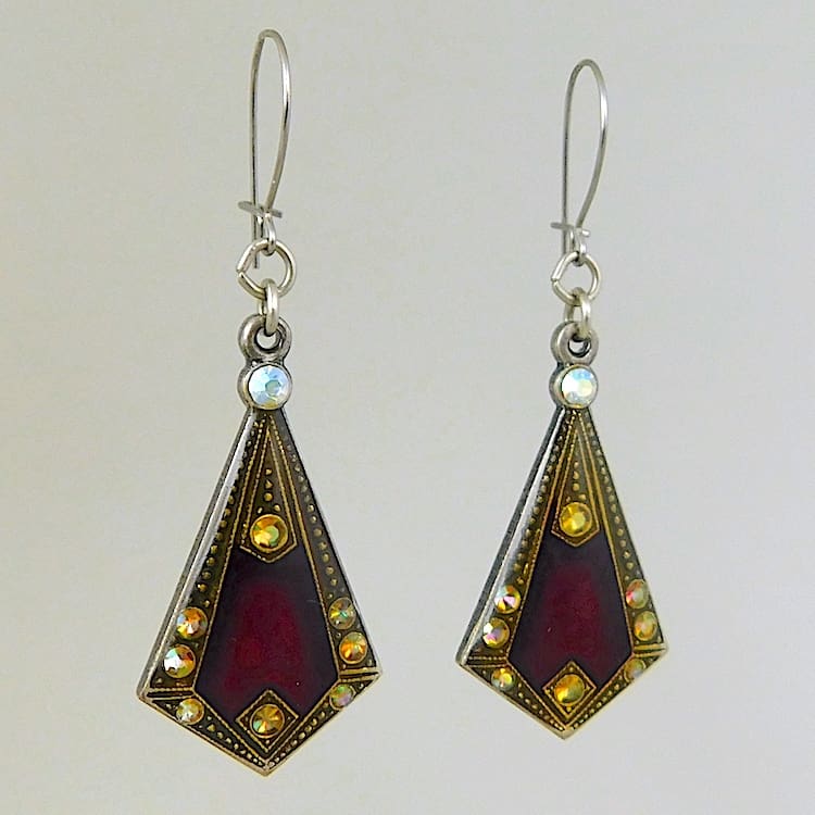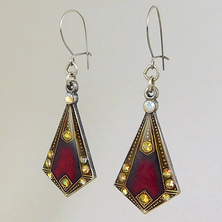 French art deco enamel and diamonte earrings for pierced ears, fitted with silver safety clasp.